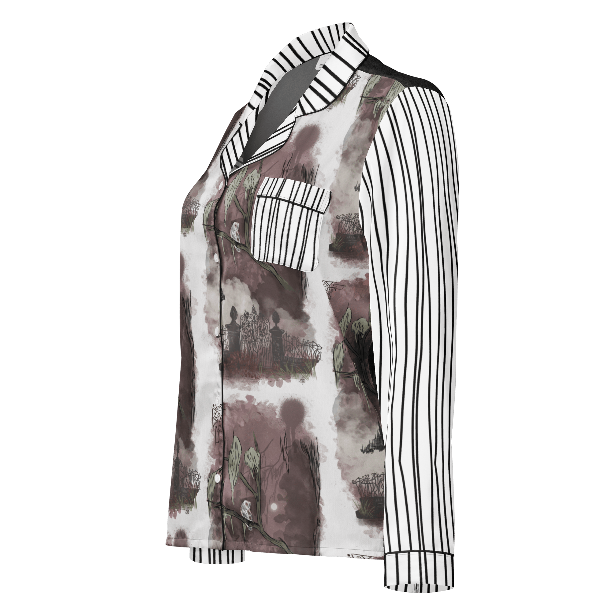 This silky pajama top is ideal for a cozy day when you want to feel both comfortable and elegant. It features a relaxed fit, chest pocket, and elegant piping detail.