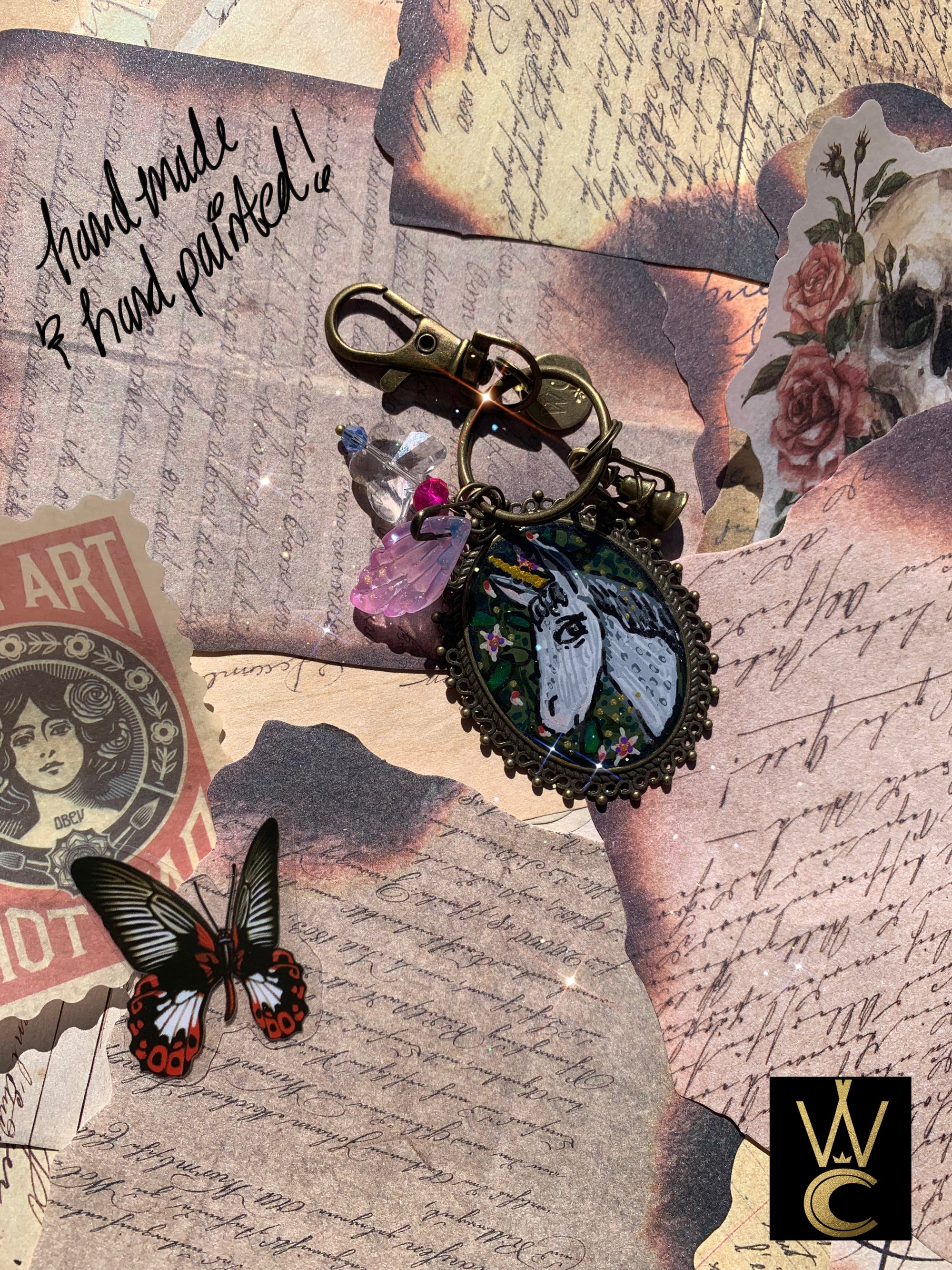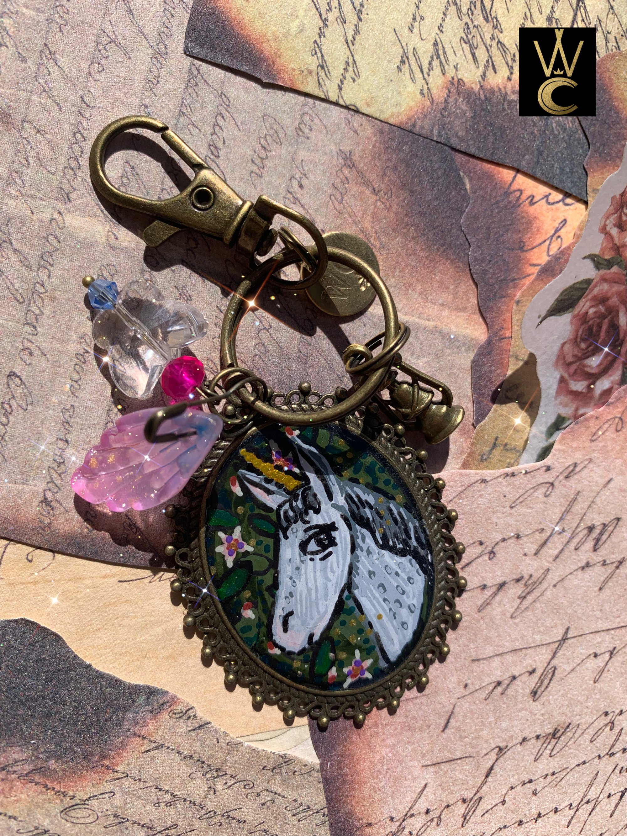 Enchanting Unicorn hand painted bag charm keychain