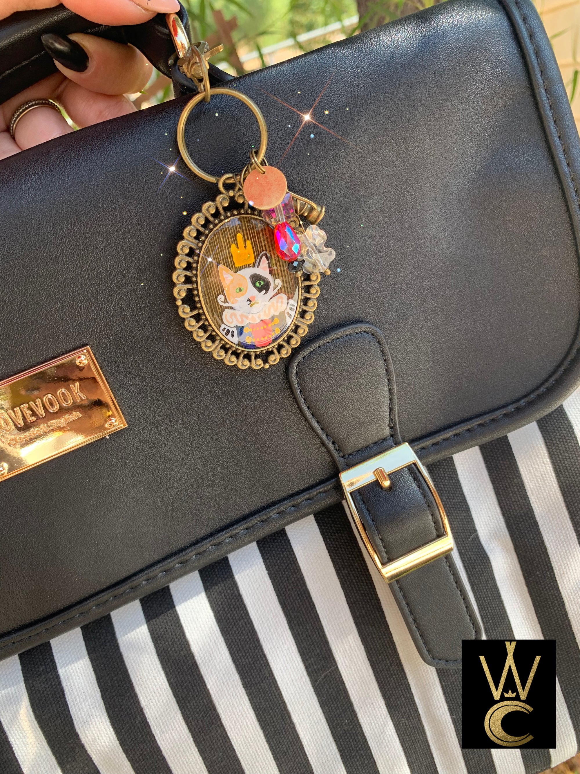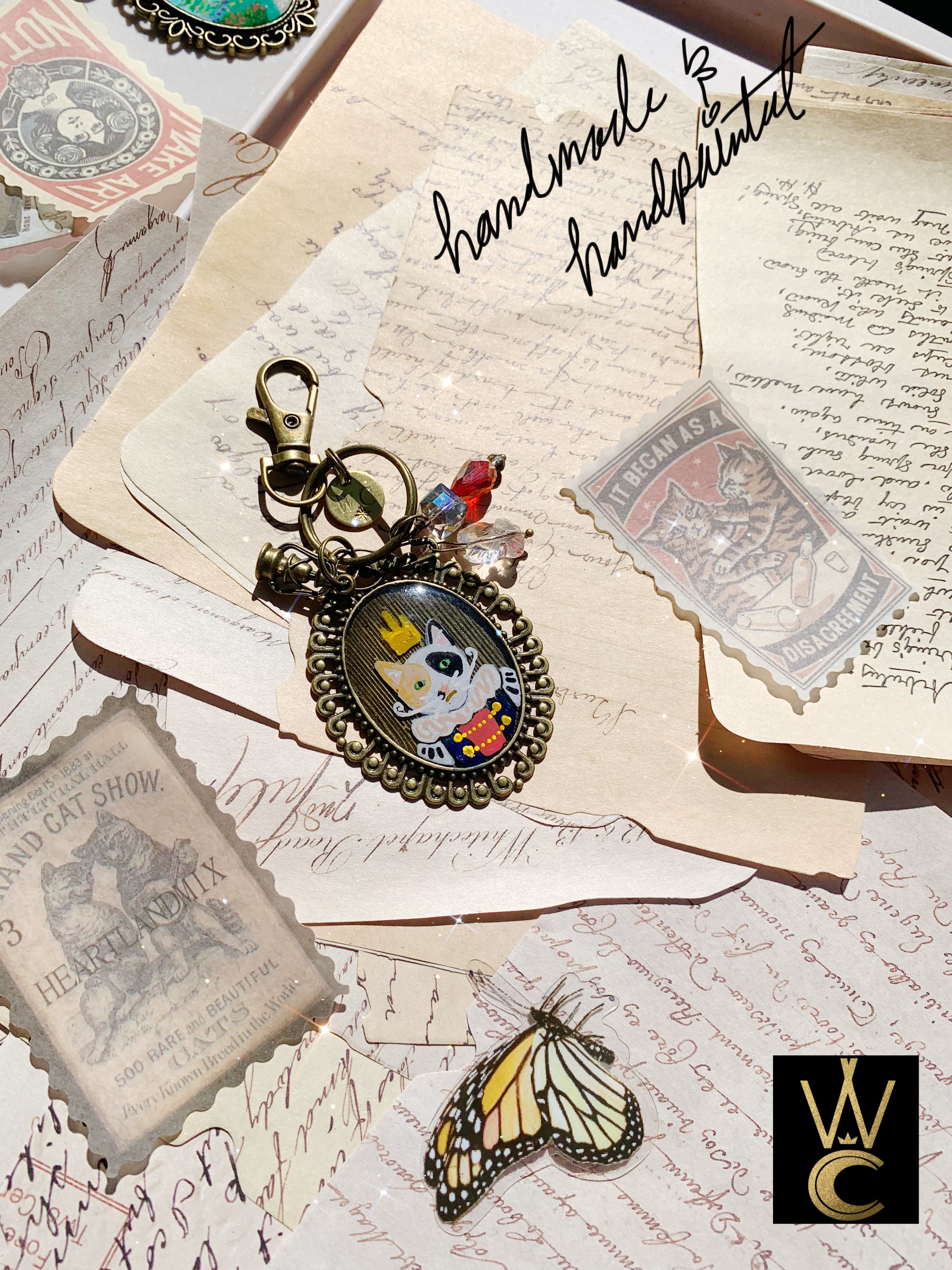 King Pss Pss Kitty Cat hand painted bag charm and keychain